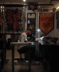 When you arrive at our shop, you will be greeted by our staff and offered refreshments while you wait for your artist to prepare. If you wish for more privacy during your session, we are more than happy to set up a station with privacy screens to provide you with a comfortable tattoo experience.